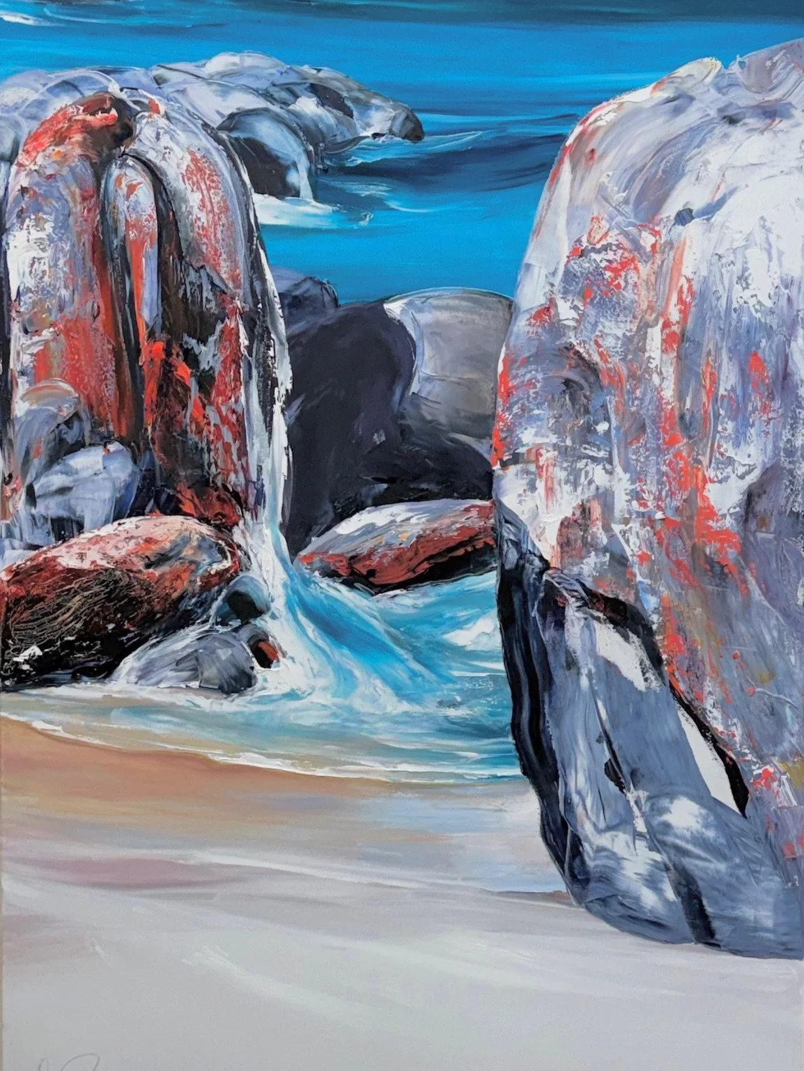 Judy Antill is regarded as one of Australia’s foremost seascape painters – having worked (often on location) along its rugged shores for over 35 years. Up until the late 90s she exhibited with commercial galleries but her leaning towards Human Rights concepts saw her break away to run her own gallery spaces in Australia and London. She has also exhibited at the Florence Beinnale and in New York and has a large international following.